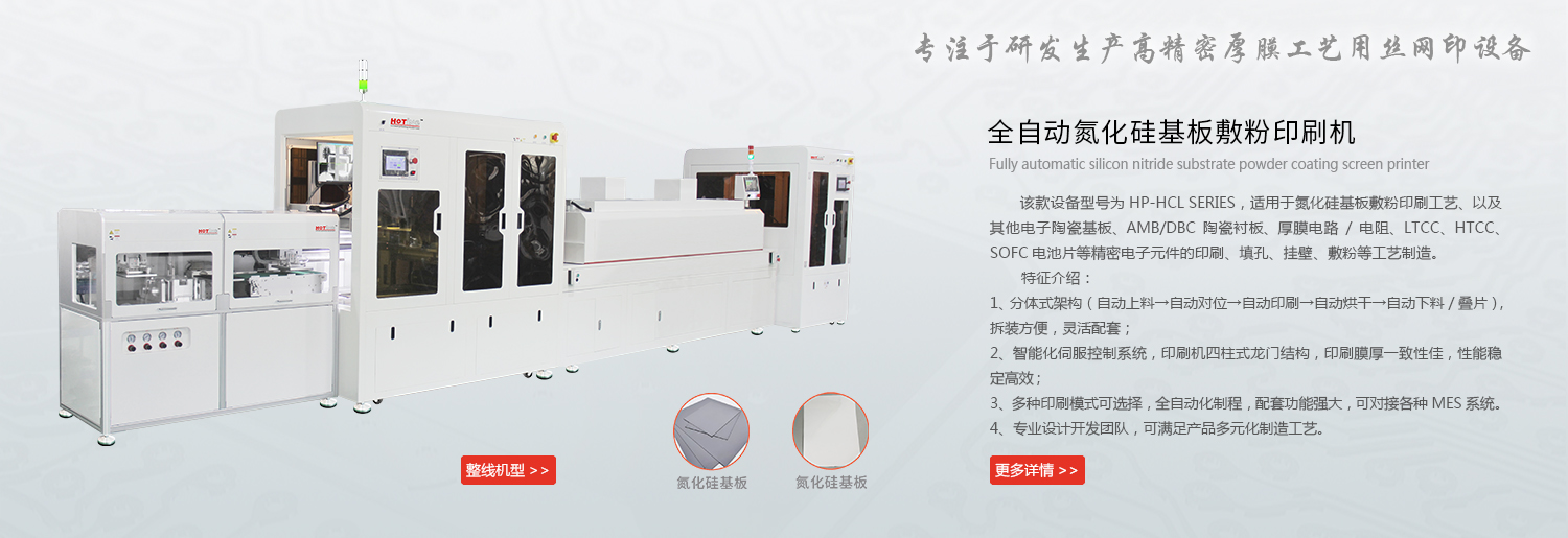 煊廷作为电子陶瓷封装领域上游产业链中的厚膜工艺用丝网印刷机制造商,在本届展会中我们带来了多款厚膜印刷设备,有全自动AMB/DBC覆铜基板印刷机、全自动氮化硅基板敷粉印刷线、SOFC电池片印刷线、HTCC/LTCC/ESC印刷机/填孔机、自动对位厚膜印刷机、半自动厚膜印刷机等丝网印刷设备,煊廷所有设备都可满足客户的客制化需求,并提供快速响应服务,确保高效解决产品工艺技术要求、信息及设备方案等问题。넶27 2025-09-02